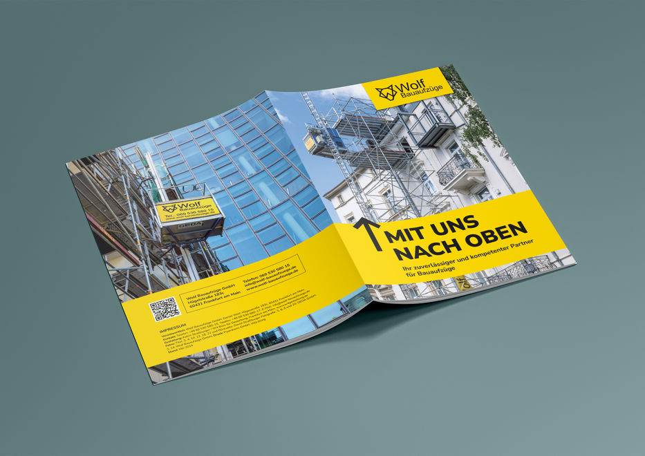 Konzept und Gestaltung einer Broschüre für Wolf Bauaufzüge. Darin werden alle Leistungen sowie die aktuellen Bauaufzüge vorgestellt. Art Direction, Seitenlayout, Textbearbeitung und Design von Icons.